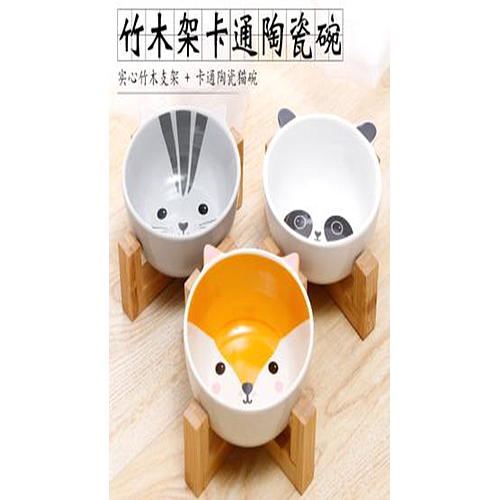 Bamboo wood stand and cartoon ceramic cat bowl 115505/2