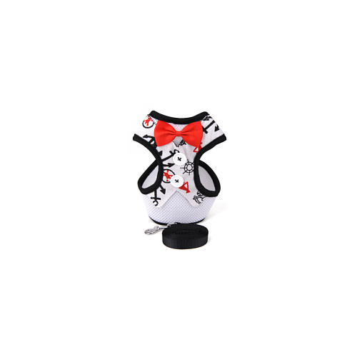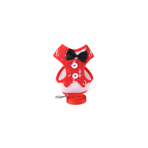 Pet H-Harness & Leash Red with Black Ribbon and White Anchor 1265 (S)