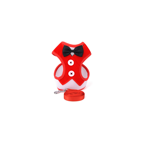 Pet H-Harness & Leash Red with Black Ribbon 1265 (S)